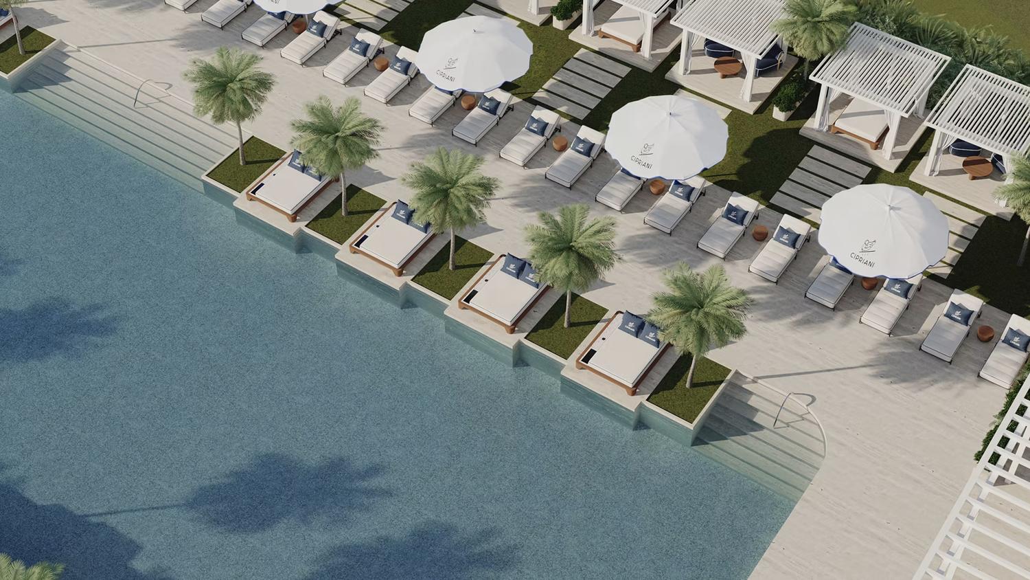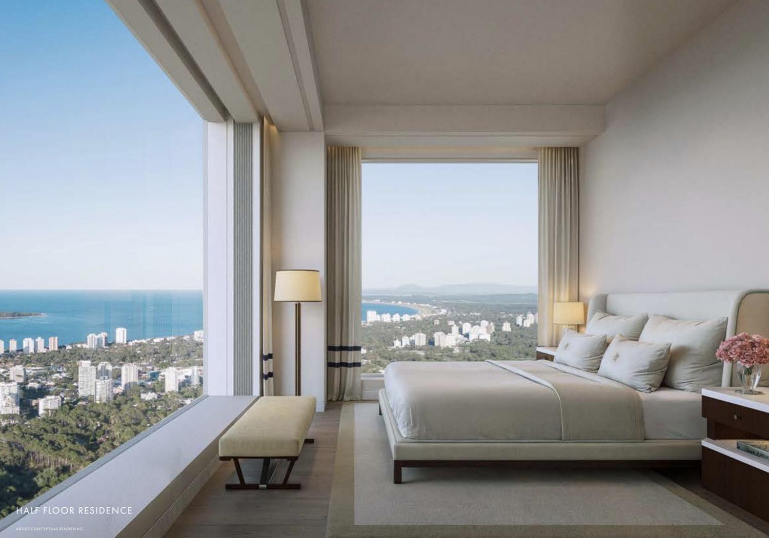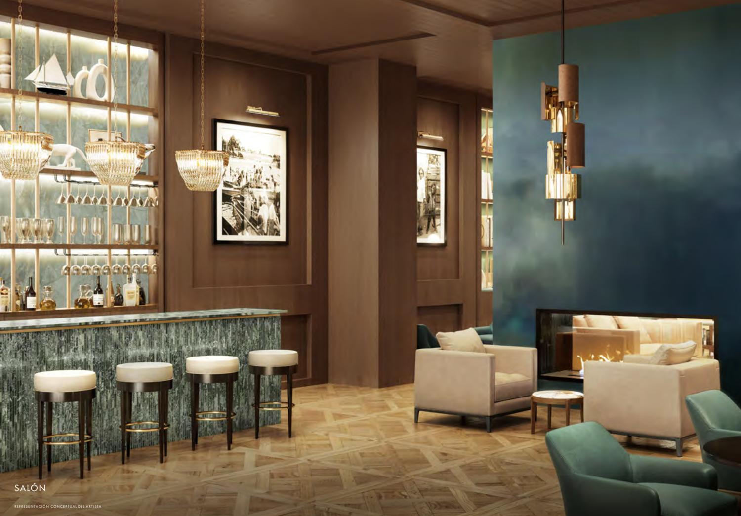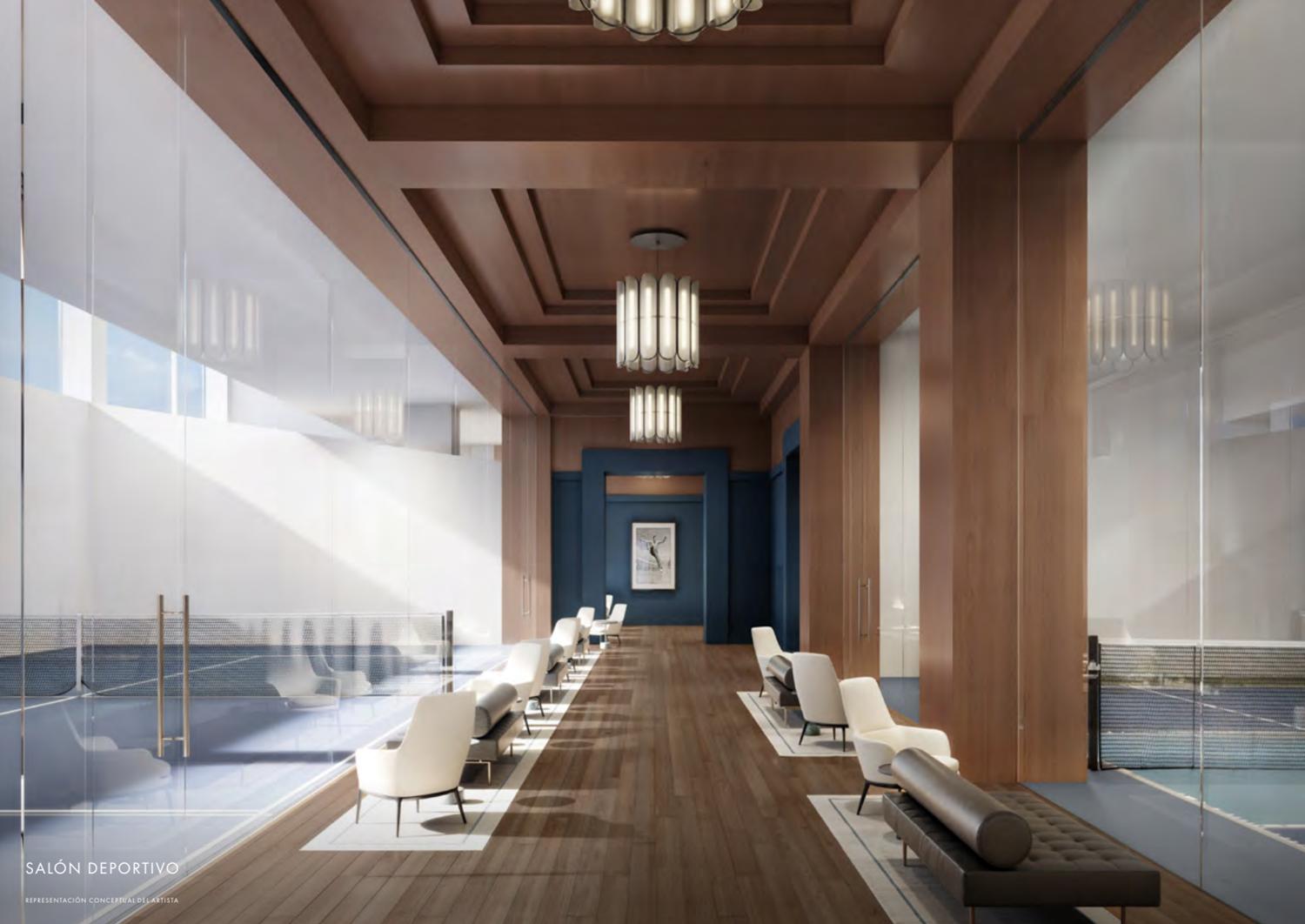 - Entre sus amenities exclusivos se destacan piscinas cubiertas y al aire libre, canchas de pádel y squash, simulador de golf, surf club, bolera, gimnasio, spa holístico, espacios de arte y áreas de entretenimiento para todas las edades.