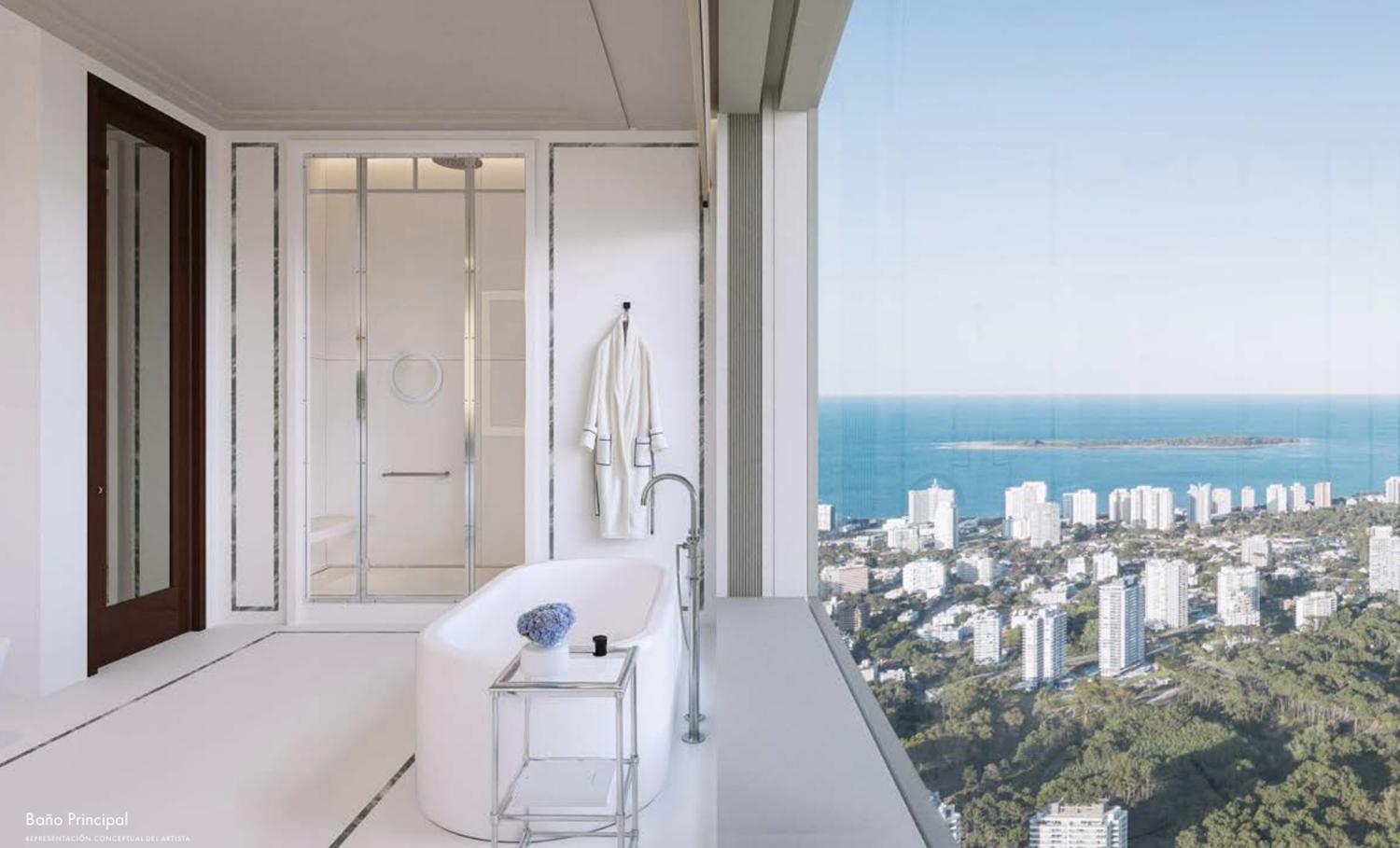 - Las residencias, diseñadas con la firma minimalista de Hassen Balut, ofrecen vistas ininterrumpidas a Playa Brava y Playa Mansa, cocinas italianas a medida, pisos de mármol importado y terrazas privadas con más de 3,4 m de altura.